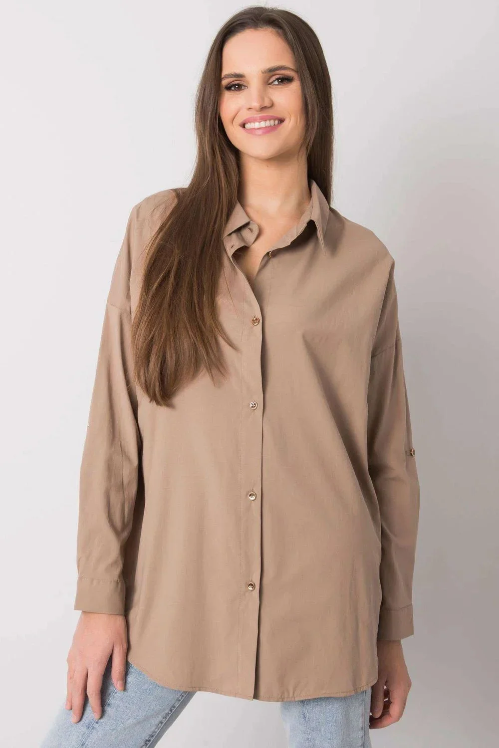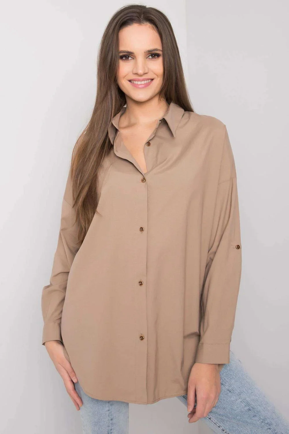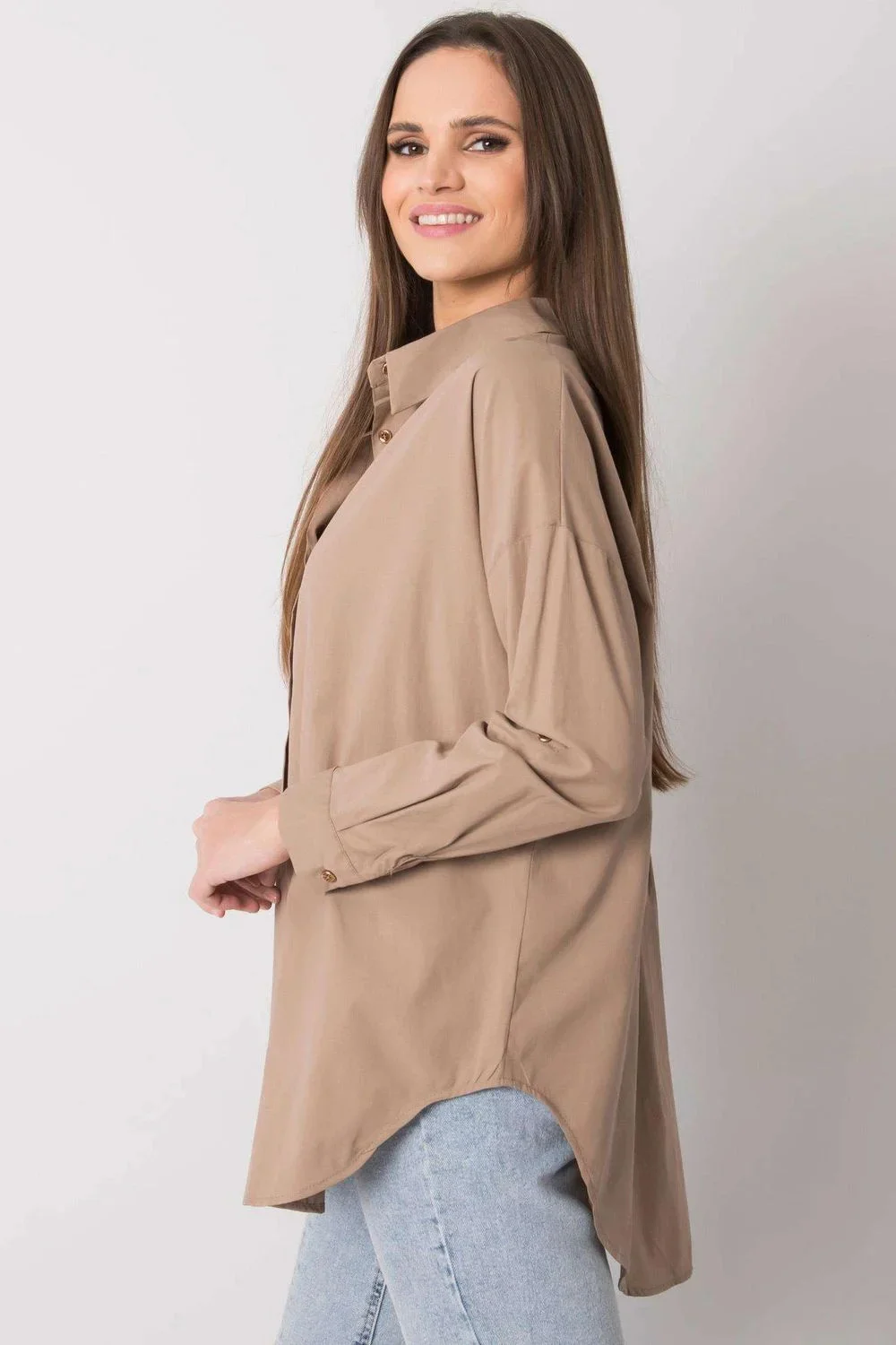 Prodloužená košile volného střihu se zapínáním na knoflíky. Košile s dlouhým rukávem. Perfektní nabídka pro mnoho příležitostí.