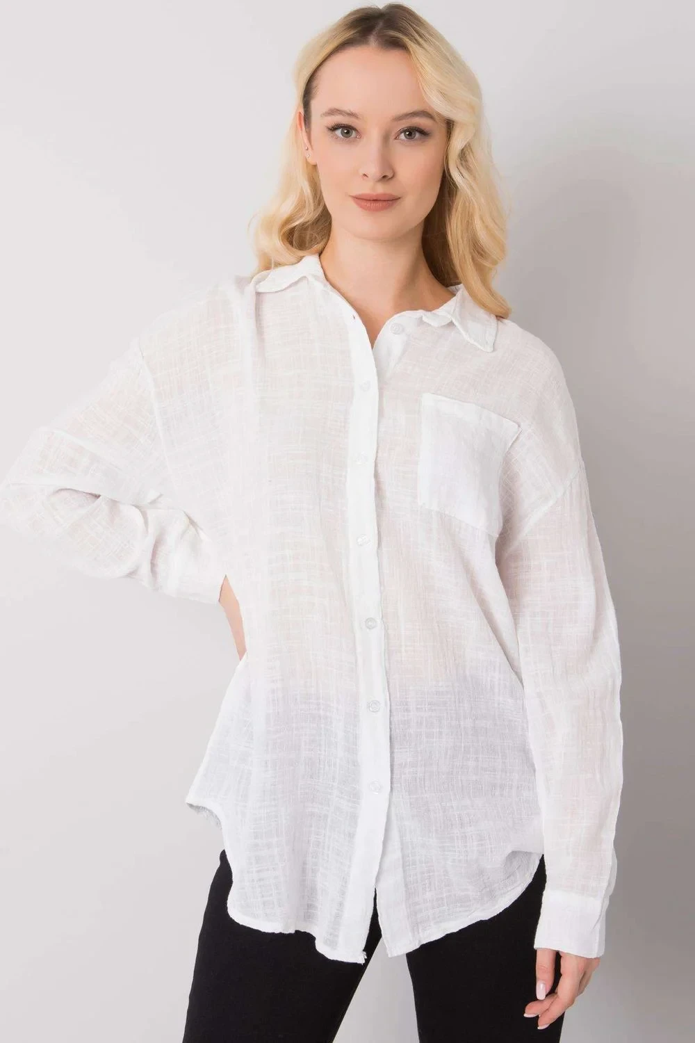 Bavlněná košile volného střihu se zapínáním na knoflíky. Na přední straně našitá kapsa.
