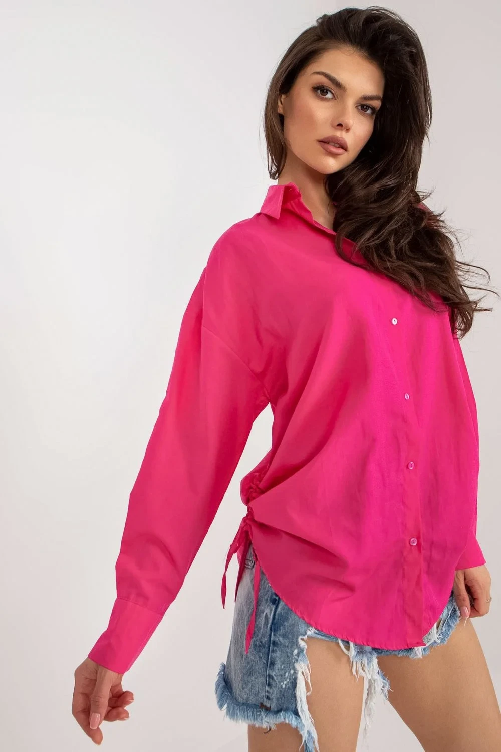 Dámská košile volného střihu s dlouhými rukávy, zapínání na knoflíky. Žebrování na bocích košile. Bavlna 65 %