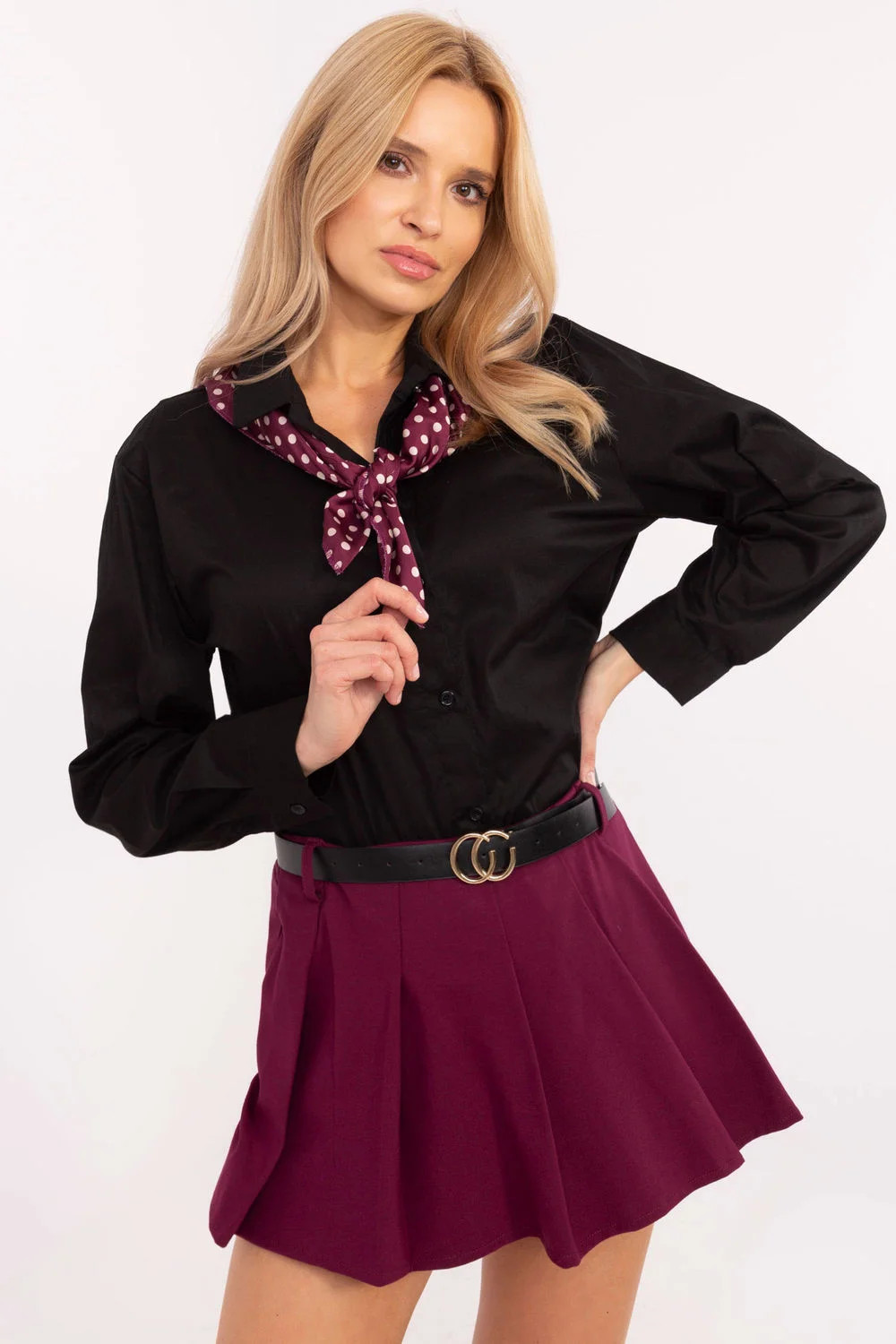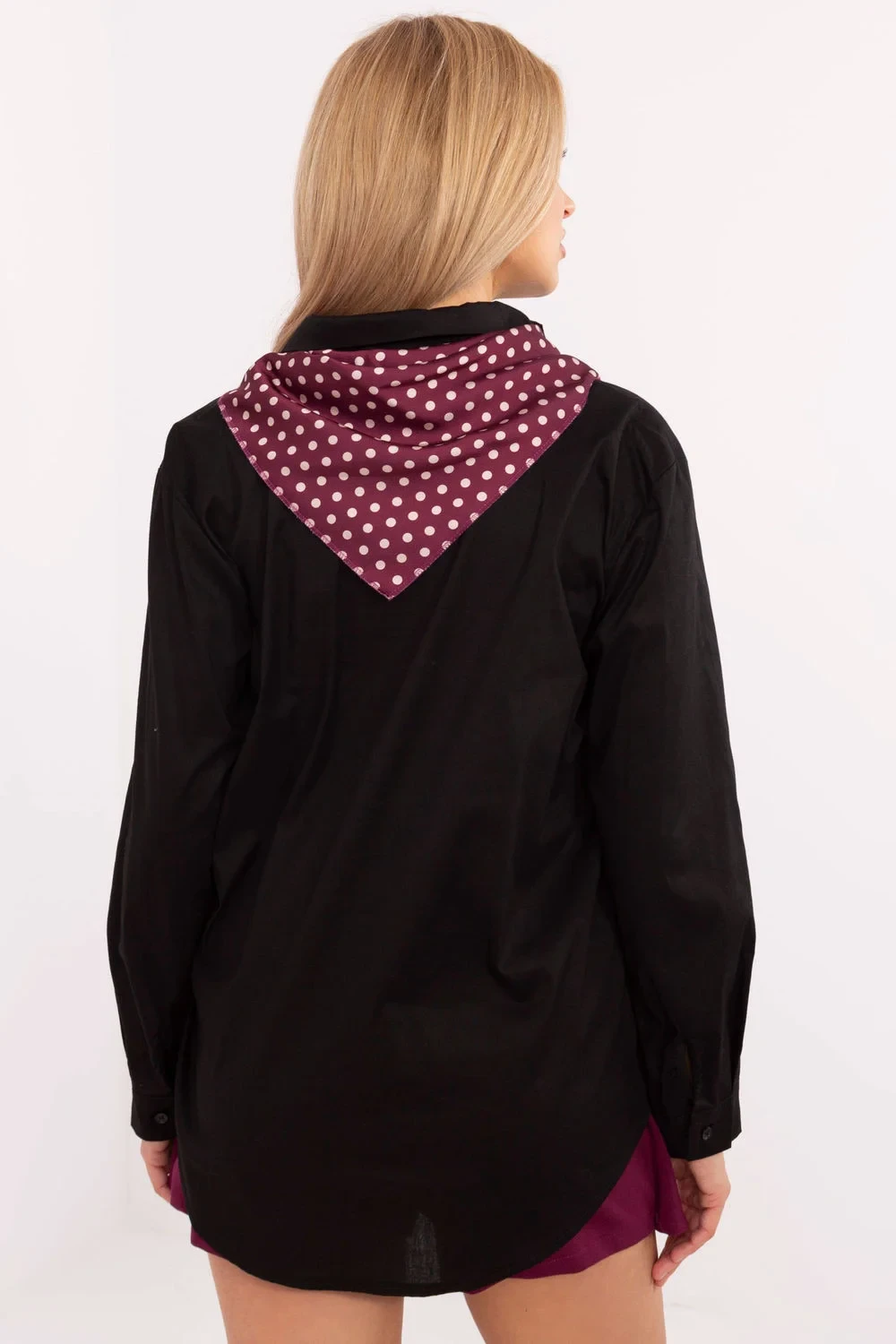 Elegantní dámská košile klasického střihu, ideální na formální události, do práce nebo na každý den, kdy chcete vypadat stylově a profesionálně. Košile je ušita z vysoce kvalitní bavlny s přídavkem elastanu, co zajišťuje pohodlí nošení a perfektní přizpůsobení. Model s klasickým límečkem a zapínáním na knoflíky je esencí nadčasové elegance. Dlouhý rukáv umožňuje nosit košili v jakémkoli ročním období. Hladká textura materiálu jí dodává minimalistický šarm, který lze snadno sladit s různými stylizacemi. Výjimečným prvkem je odnímatelný šátek, který umožňuje jemné oživení stylizace. Můžete ho nosit podle příležitosti, s šálkem pro elegantnější efekt nebo bez něj pro jednodušší vzhled. Jedná se o skvělý návrh pro ženy, které oceňují klasiku s nádechem všestrannosti.