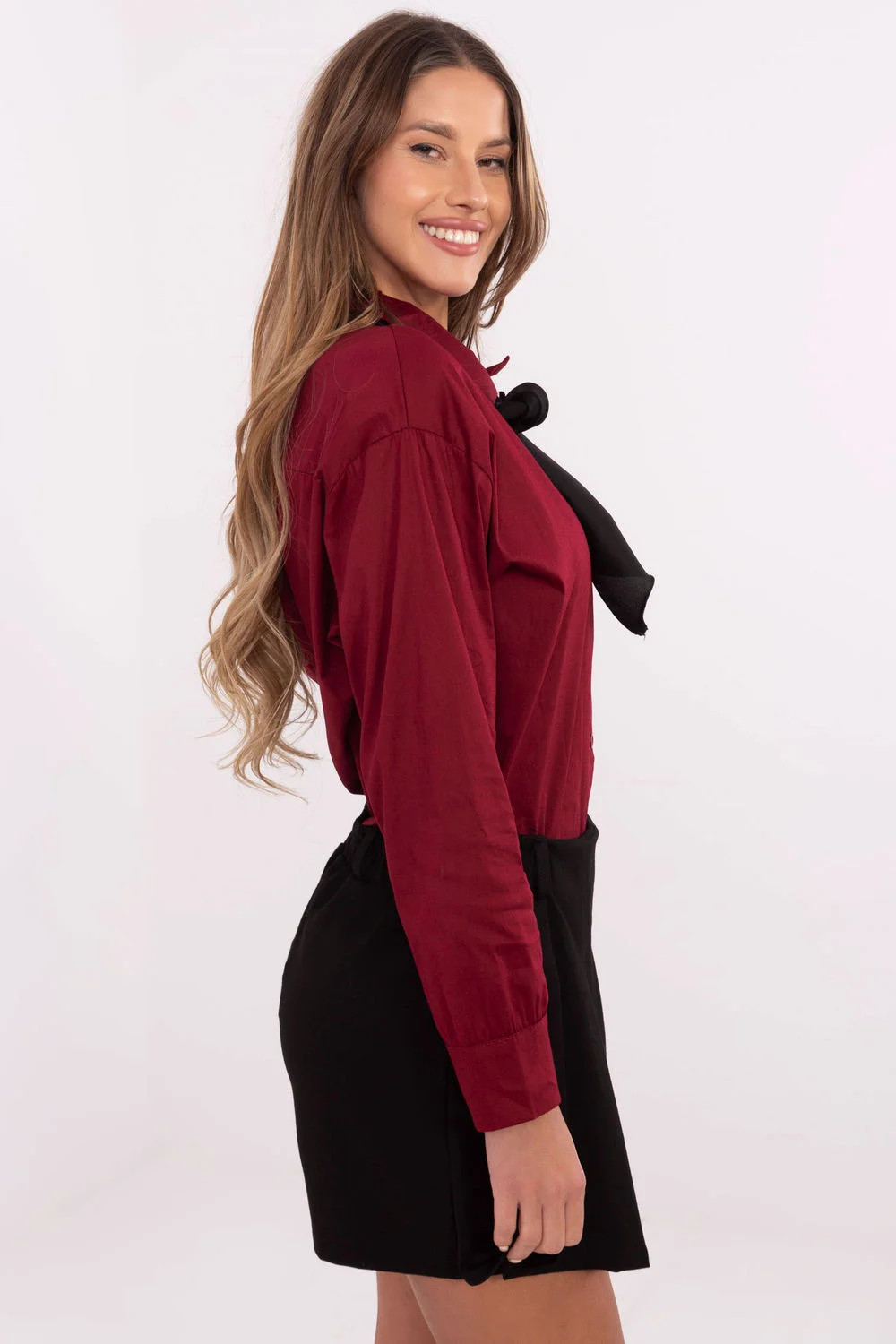 Klasická dámská košile je kvintesencí elegance a funkčnosti, skvěle se hodí na každý den, do práce nebo na společenské události. Vyrobená z vysoce kvalitní bavlny poskytuje pohodlí po celý den a skvěle sedí na postavě. Hladká látka zdůrazňuje její univerzální charakter, dělajíc z ní nezbytný kousek každého šatníku. Model s klasickou délkou, dlouhými rukávy a klasickým límečkem se vyznačuje detaily, které dodávají košili jedinečný styl. Přiložená brož a šála, které lze sundat, umožňují personalizaci outfitu, od minimalistické klasiky po více zdobený, trendy look. Zapíná se na knoflíky a skvěle ladí jak s elegantními kalhotami, tak s sukněmi, nabízí mnoho možností stylizace. Je to skvělá volba pro ženy, které ocení nadčasový styl s nádechem moderních detailů.