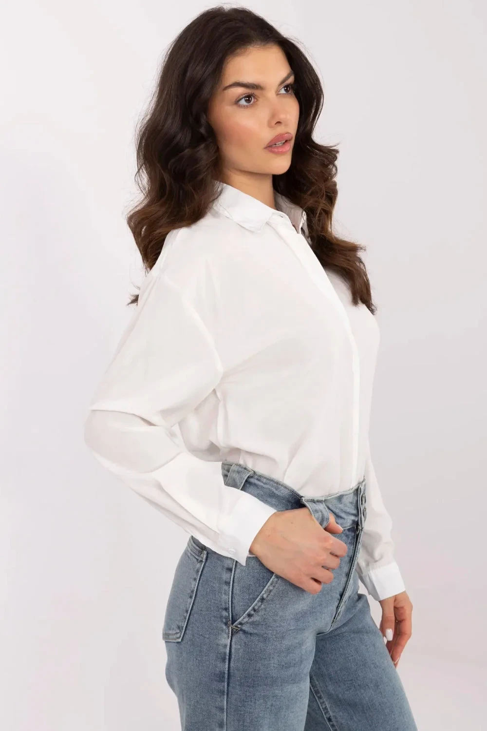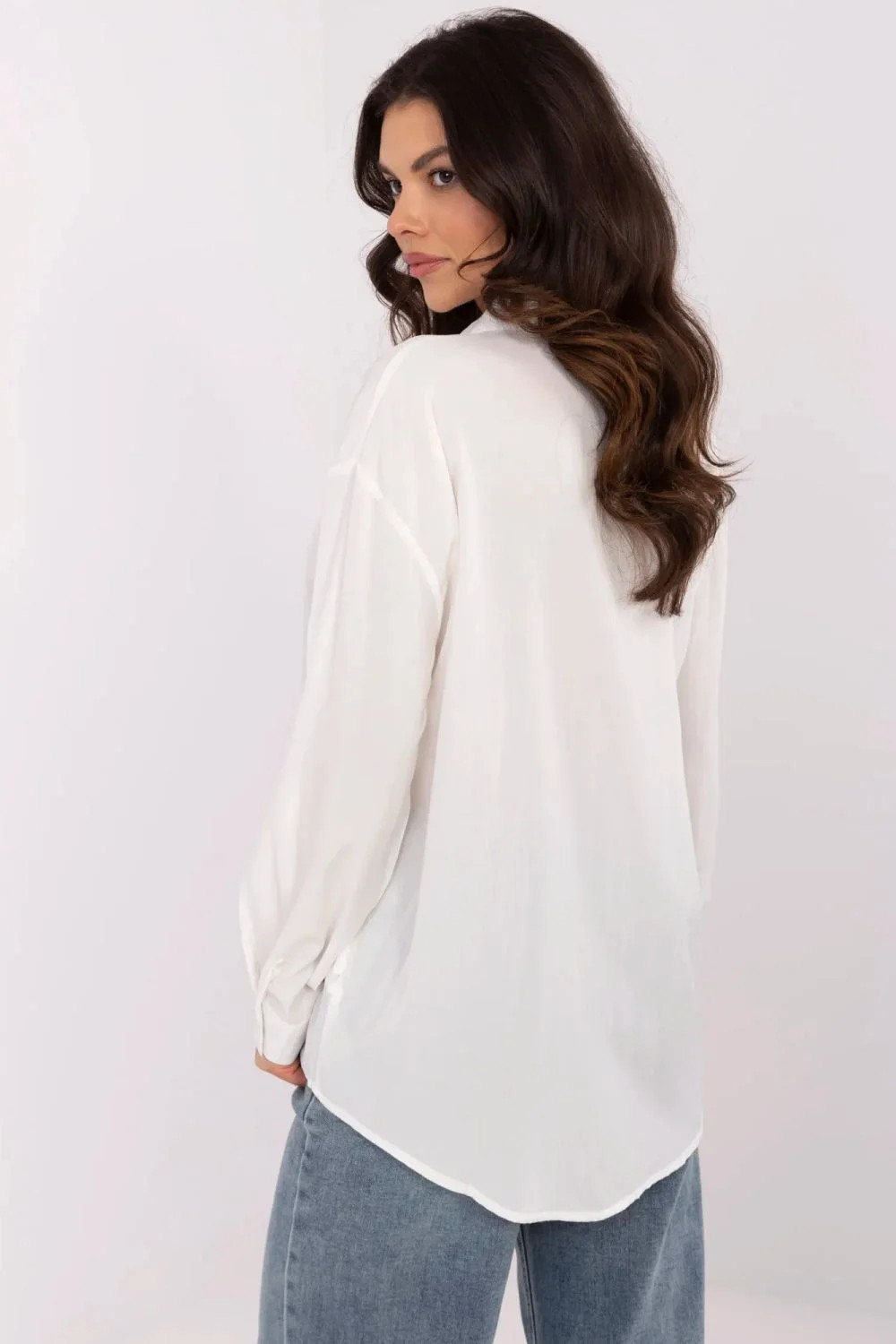 Elegantní a nadčasová dámská košile, ideální na každý den, do práce a na společenské události. Klasický střih zdůrazňuje profesionální charakter stylizace a přizpůsobený střih zaručuje pohodlí nošení. Vyrobená z vysoce kvalitního kombinace polyesteru a elastanu, zaručuje lehkost, pružnost a snadnou údržbu. Košile má standardní délku, dlouhé rukávy a klasický límec, což ji činí univerzálním kouskem šatníku. Zapínání na knoflíky přidává eleganci a umožňuje upravit výstřih podle individuálních preferencí. Skvělá volba pro ženy, které ocení styl a pohodlí.
