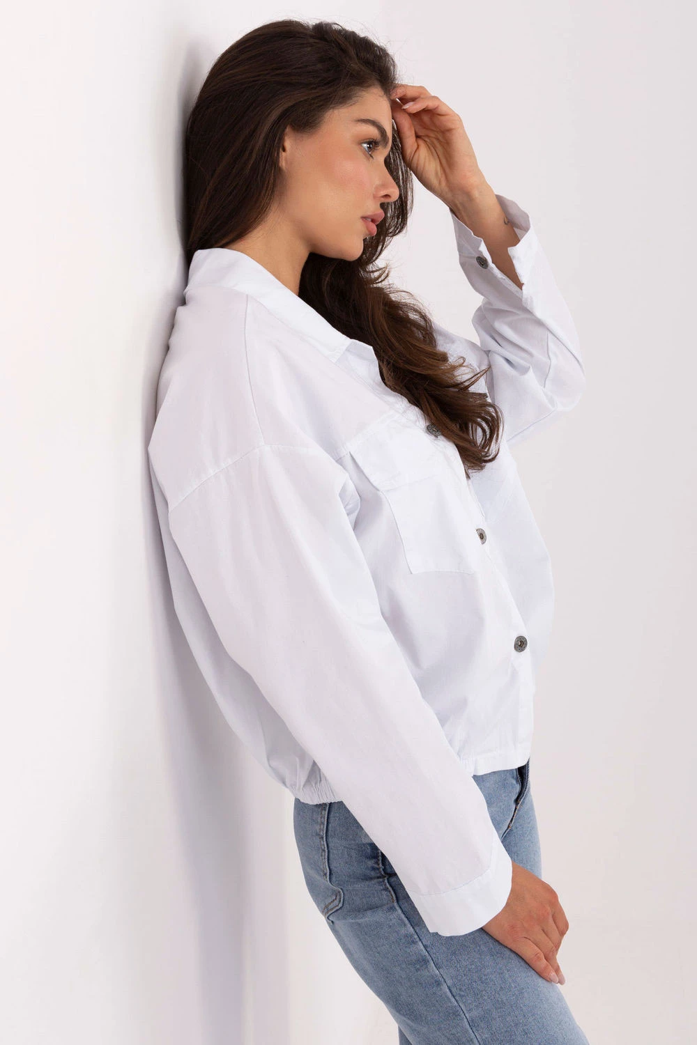 Dámská košile s kapsami je pohodlný a stylový návrh pro každodenní outfit. Vyrobena z vysoké kvality bavlny s přídavkem elastanu, zajišťuje pohodlí, prodyšnost a ideální přizpůsobení postavě. Hladký materiál a klasické zapínání na knoflíky jí dodávají univerzální charakter, který se skvěle hodí do casualového stylu. Model s kratší délkou, dlouhým rukávem a límečkem má praktické kapsy na přední straně s klopami, které dodávají celku funkčnost. Na zádech v dolní části je vsazena gumovka, díky čemuž se košile lépe přizpůsobuje postavě a decentně zdůrazňuje pas. Skvěle ladí s džíny, sukněmi nebo šortkami, vytvářející pohodlný a stylový outfit na každý den.