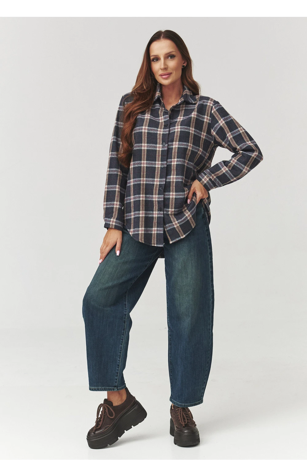 Jsou oblečení, které nevyjdou z módy, a košile v kostkovaném vzoru je právě takový klasik, který stojí za to mít po ruce po celý rok. Naše nabídka je moderním pohledem na nadčasový vzor. Volný střih, lehce prodloužený zadek a měkká, příjemná na dotek tkanina vás zamiluje od prvního obléknutí. K dispozici v několika barevných variantách kostky od teplých podzimních odstínů po více decentní verze, hodí se jak do každodenních stylizací, tak i těch uvolněnějších: s legíny, džínami nebo jako přehoz na tričko. Je to ideální košile na chladnější dny, nosit ji s botami, teniskami nebo dokonce s páskem v pasu, pokud rádi experimentujete s tvarem. Tato košile není jen základem mnoha stylizací. Spojuje v sobě uvolněnost, ženskost a pohodlí. Stačí ji jednou obléci, abyste pochopili, proč kostka nikdy nevyjde z módy. Vyrobeno v Itálii.