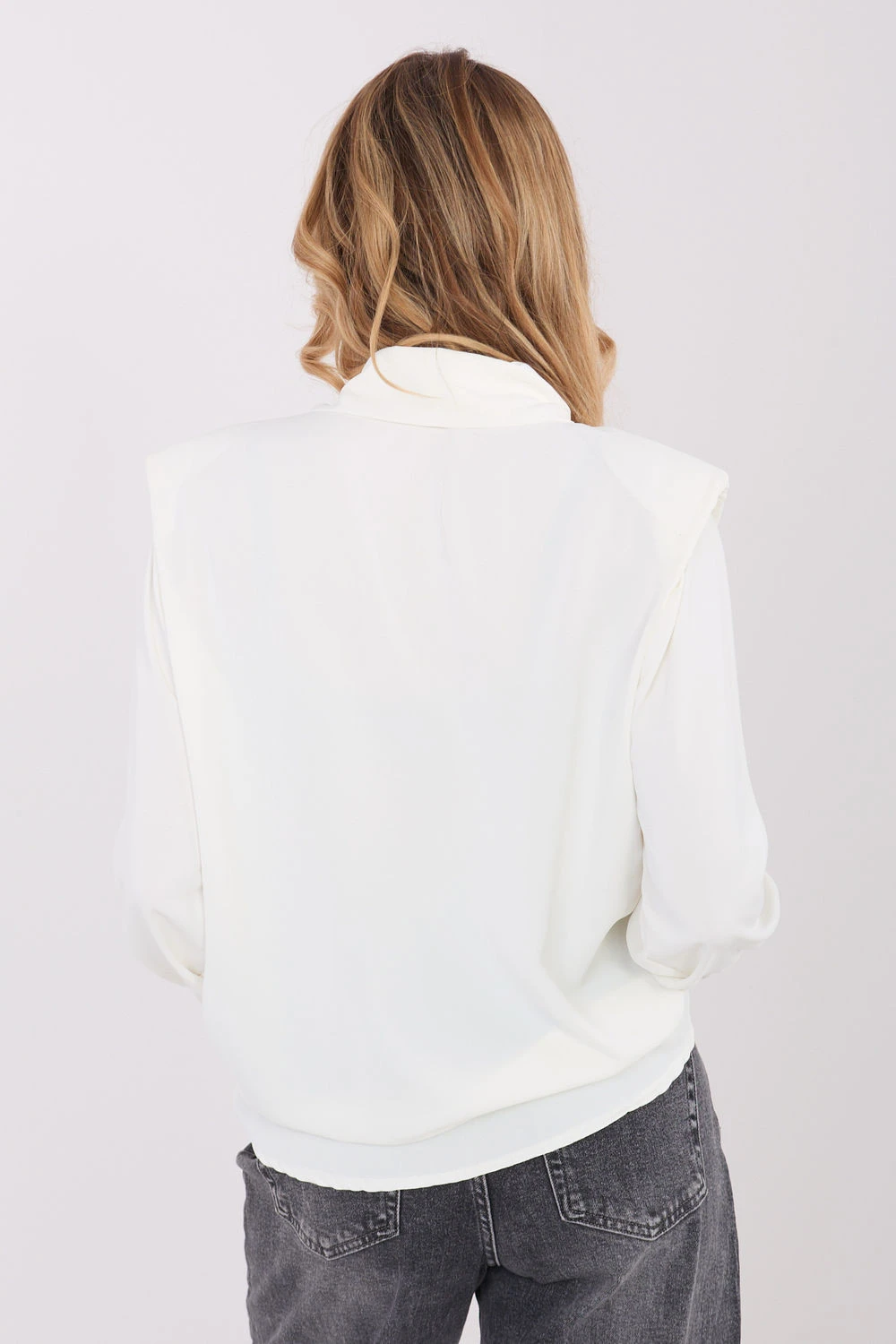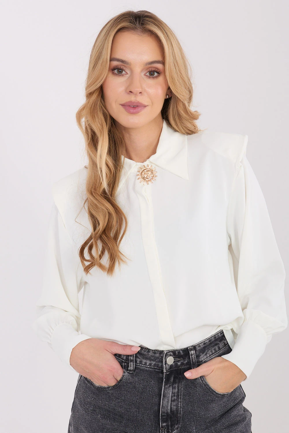 Tato stylová košile je kvintesencí elegance spojené s každodenním pohodlím. Vyrobená z vysoce kvalitní směsi viskózy, polyesteru a elastanu, poskytuje pohodlné nošení, hladkou fakturu a skvělé přizpůsobení postavě. Klasický límeček a zapínání na knoflíky skryté pod lištou jí dodávají velmi uklizený, nadčasový charakter, ideální jak do kanceláře, tak na formálnější události. Dlouhý, lehce objemný rukáv přidává košili ženský výraz a jemnou eleganci. Dalším akcentem je jemná brož, která zdůrazňuje elegantní styl a odlišuje košili od ostatních klasických modelů. Standardní délka z ní dělá skvělý výběr pro nošení zasunuté do kalhot nebo sukně, stejně jako volně nošená. Univerzální, elegantní a nesmírně ženská, skvělá volba na každý den, kdy chcete vypadat profesionálně a stylově.