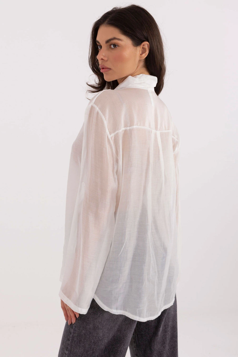 Elegantní klasická dámská košile, ideální na každý den, do práce i na formální události. Vyrobená z vysoké kvality směsi tencelu a polyesteru, je měkká, prodyšná a pohodlná na nošení a elegantně padne. Model s standardní délkou má hladký, nadčasový vzor, který skvěle ladí jak s formálními, tak s každodenními stylizacemi. Košile má dlouhý rukáv s možností zkrácení, co umožňuje snadnější přizpůsobení podmínkám a dodává jí univerzální charakter. Na výstřihu je šňůrka, která dodává celku decentní ženský akcent. Klasické zapínání na knoflíky zdůrazňuje elegantní styl a zjemňuje linii siluety. Ideální volba pro ženy, které oceňují eleganci, praktičnost a jemné detaily v každodenním i pracovním oblečení.