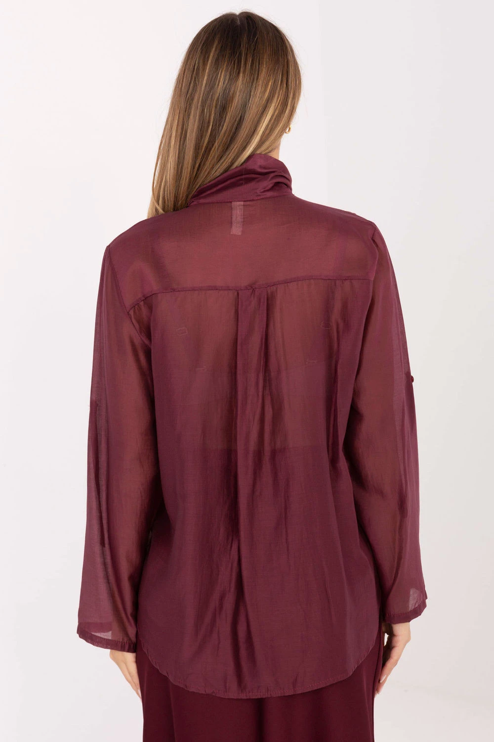 Elegantní klasická dámská košile, ideální na každodenní nošení do práce, stejně jako na formální události. Vyrobená z vysoce kvalitní směsi tencelu a polyesteru, je měkká, prodyšná a pohodlná na nošení, a zároveň se elegantně tvaruje. Model s standardní délkou má hladký, nadčasový vzor, díky čemuž skvěle ladí jak s formálními, tak s každodenními stylizacemi. Košile má dlouhý rukáv s možností zkrácení, co umožňuje snadno ji přizpůsobit podmínkám a dodává jí univerzální charakter. U dekoltu je šňůrka, která dodává celku decentní ženský akcent. Klasické zapínání na knoflíky zdůrazňuje elegantní styl a zúžuje linii postavy. Je to ideální volba pro ženy, které oceňují eleganci, praktičnost a decentní detaily ve svém každodenním i obchodním oblečení.