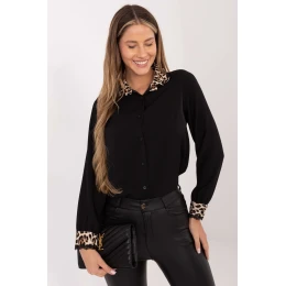 Dámská košile klasického casual stylu je elegantní a zároveň každodenní volbou ideální do práce i běžných výletů. Vyrobená z kombinace viskózy, polyesteru a elastanu zajišťuje pohodlí nošení, jemnost a lehkou pružnost, díky čemuž skvěle padne na postavu. Model se standardní délkou, dlouhým rukávem a klasickým límečkem vypadá elegantně a nadčasově. Hladký vzor je prolomen jemnými akcenty, zvířecím motivem na manžetách a límečku, které košili dodávají výjimečný charakter, a krajka u manžet přináší ženský, elegantní detail. Košile se zapíná na knoflíky, co zdůrazňuje její klasický styl a funkčnost. Stylová, pohodlná s nádechem originality ideální do kancelářských outfitů a každodenního elegantního looku.