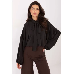 Tento elegantní dámský top bez límce je nadčasovým návrhem s klasickým charakterem, ideální jak do každodenního nošení, tak do práce nebo na formální události. Vyroben z lehkého polyesteru, poskytuje pohodlí a bezchybný vzhled po celý den. Model má standardní délku a dlouhý, nafouklý rukáv s decentní volánkou, která dodává celku ženský šarm. Výstřih s ozdobným vázáním zdůrazňuje krk, a praktické zapínání na knoflíky zajistí pohodlí a klasický styl. Hladká tkanina dělá z topu skvělý doplněk jak k elegantním kalhotám, tak k sukní, tvořící stylový a upravený vzhled.