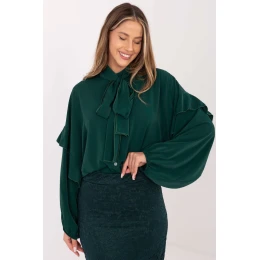 Tato elegantní dámská košile bez límce je nadčasovým návrhem s klasickým charakterem, ideální jak do každodenního života, tak do práce nebo na slavnostní události. Vyrobená z lehkého polyesteru nabízí pohodlné nošení a bezchybný vzhled po celý den. Model má standardní délku a dlouhý, objemný rukáv s decentním volánem, který dodává celku ženský šarm. Výstřih s ozdobným vázáním zdůrazňuje krk a praktické zapínání na knoflíky zajišťuje pohodlí a klasický styl. Hladká tkanina dělá košili perfektně sladěnou jak s elegantními kalhotami, tak s sukní, vytvářející stylový a uklizený vzhled.