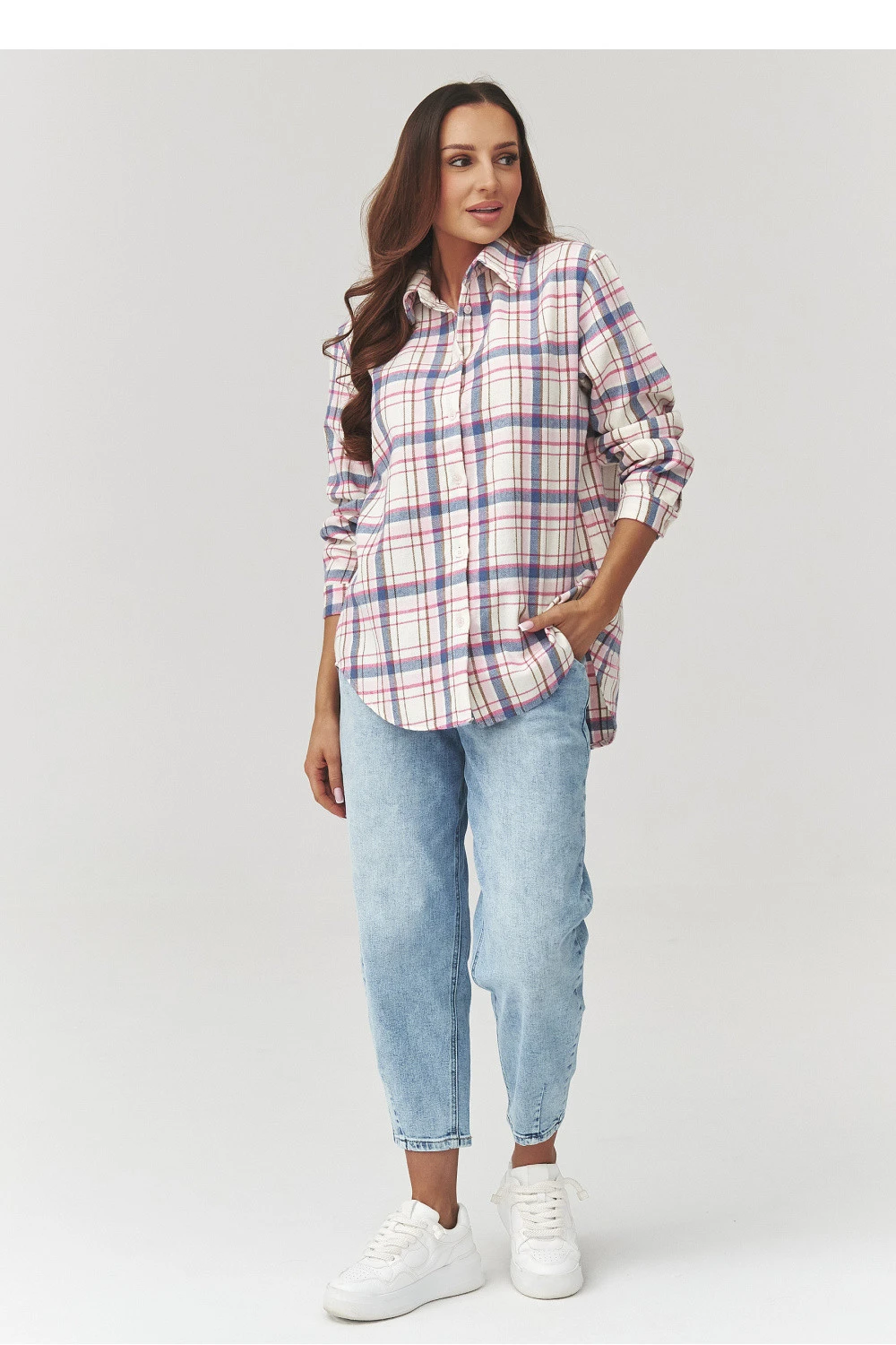 Existují oblečení, které nevyjdou z módy a košile v kostkovaném vzoru je právě takový klasik, který stojí za to mít po ruce po celý rok. Naše nabídka je moderním pohledem na nadčasový vzor. Volný střih, lehce prodloužený zadek a měkká, příjemná na dotek tkanina vám umožní zamilovat se do ní od prvního nadení. K dispozici v několika barevných variantách od teplých jarních odstínů po více decentní verze, hodí se jak do každodenních, tak do volných stylizací: s legínami, džínsy nebo jako náhradní vrstva na triko. Je to ideální košile na den, nosit ji s kotníkovými botami, teniskami nebo dokonce s páskem v pasu, pokud rádi experimentujete s tvarem. Není to jen košile, je základem mnoha stylizací. Spojuje v sobě volnost, ženskost a pohodlí. Stačí ji jednou obléknout, abyste pochopili, proč kostka nikdy nevyjde z módy. Vyrobeno v Itálii.