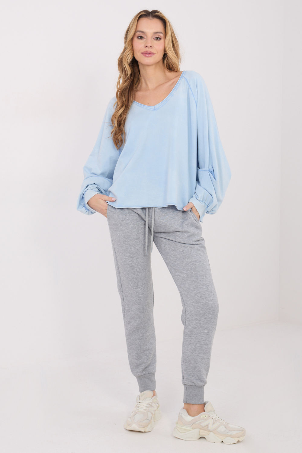 Každodenní volný top, ideální pro pohodlné a stylové outfity na každý den. Vyrobený z měkké bavlny s přídavkem elastanu, poskytuje pohodlí a skvělé přizpůsobení postavě. Model s hladkým vzorem a standardní délkou má výstřih do V, který jemně zdůrazňuje krk a dodává ženský charakter. Dlouhé nadýchané rukávy jsou módním akcentem a dodávají topu lehkost. Bez zapínání zdůrazňuje jednoduchost střihu a pohodlí nošení. Skvělý návrh pro každodenní, volné outfity.