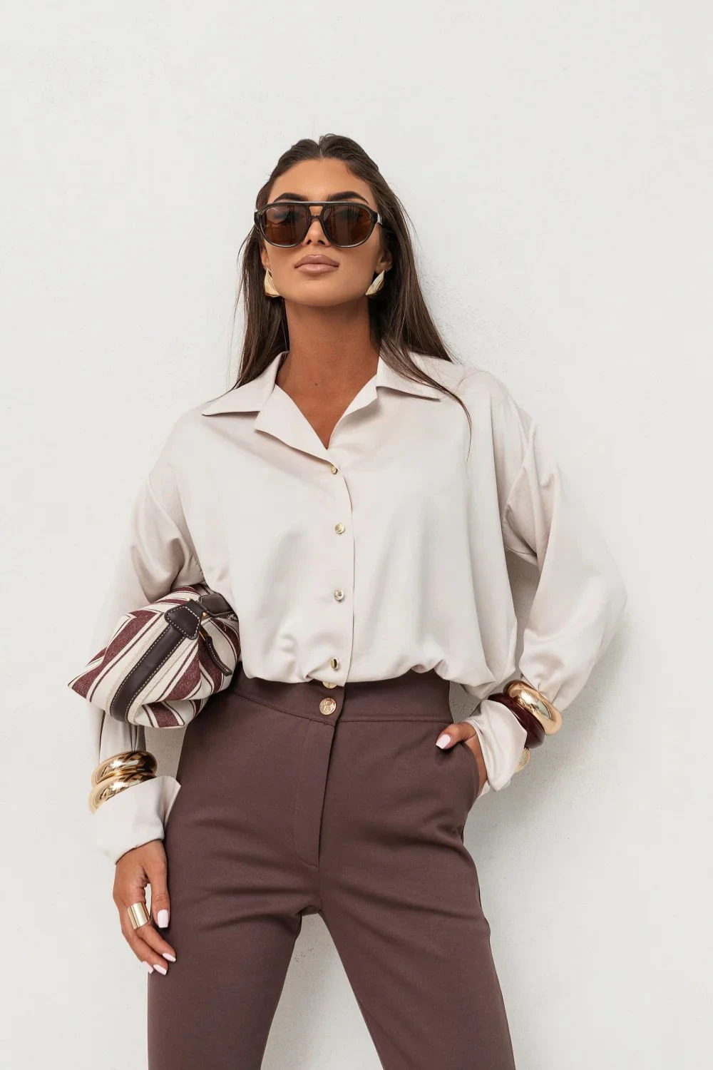 Představujeme vám saténovou košili MADDIE v elegantní bežové barvě, která bude ideální volbou pro ženy, které si cení stylu a pohodlí. Tato jedinečná košile byla vytvořena s ohledem na moderní trendy, spojující eleganci s každodenní funkcionalitou. Bez ohledu na příležitost přidá košile MADDIE vaší stylizaci eleganci a třídu. Naše košile se vyznačuje nejen atraktivním vzhledem, ale také vysokou kvalitou materiálů. Vyrobena z 95% viskózy a 5% elastanu, je příjemná na dotek, prodyšná a elastická. Díky tomu se dokonale přizpůsobí vaší postavě, zaručujíc pohodlí po celý den. Speciální konstrukce a pečlivé zpracování dělají z košile MADDIE produkt, který jistě upoutá pozornost. Dostupná v třech velikostech umožňuje ideální přizpůsobení střihu vašim potřebám. Skvěle se hodí k elegantním kalhotám nebo sukní, stejně jako jako součást ležérního outfitu s džínami. Saténová košile MADDIE je investicí do šatníku, která přečká zkoušku času a přidá sebevědomí každé ženě.