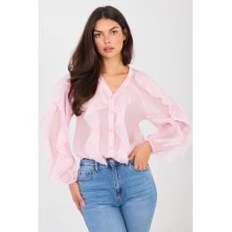 Elegantní dámská košile bez límce je stylovým návrhem, který skvěle kombinuje klasiku s moderní lehkostí. Ideální pro slavnostní události, do práce i do každodenních elegantních stylizací. Hladký vzor jí dodává nadčasový charakter a usnadňuje kombinaci s dalšími kousky oblečení. Košile je vyrobena z vysoce kvalitního tencelu s přídavkem elastanu, co zajišťuje měkkost, prodyšnost a pohodlí po celý den, zároveň jemné přizpůsobení postavě. Standardní délka zajišťuje, že model vypadá skvěle jak nošený do kalhot, tak volně. Model má dlouhý, objemný rukáv, který dodává celku ženský a elegantní výraz. Výstřih ve tvaru srdce jemně zdůrazňuje krk a zeštíhlí postavu. Zapínání na knoflíky zdůrazňuje klasický charakter košile, zatímco volány na přední straně a na rukávech jsou efektním, dekorativním doplňkem, dodávajícím košili lehkost a jedinečný styl. Ideální volba pro ženy, které oceňují eleganci, pohodlí a propracované detaily.