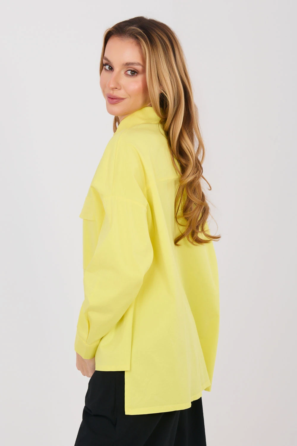 Univerzální dámská košile v casual stylu, ideální pro každodenní styling. Vyrobená z příjemné bavlny s přídavkem elastanu, poskytuje pohodlí a volnost pohybu po celý den. Model s standardní délkou a lehce prodlouženým zadním dílem, který dodává moderní charakter a skvěle padne na postavě. Hladký vzor dělá košili snadno kombinovatelnou jak s kalhotami, tak s legíny. Košile má dlouhý rukáv, klasický límec a zapínání na knoflíky. Na přední straně jsou našity kapsy s klopami, které zdůrazňují casual styl a přidávají praktický prvek. Jedná se o skvělou volbu pro ženy, které ocení pohodlí, funkčnost a nadčasový design.
