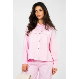 Univerzální dámská košile v casual stylu, ideální pro každodenní outfit. Vyrobená z příjemné bavlny s přídavkem elastanu, poskytuje pohodlí a volnost pohybu po celý den. Model má standardní délku s lehce prodlouženým zadním dílem, který dodává moderní charakter a skvěle padne na postavě. Hladký vzor umožňuje snadné kombinování s kalhotami i legíny. Košile má dlouhý rukáv, klasický límec a zapínání na knoflíky. Na přední straně jsou nasazeny kapsy s patkami, které zdůrazňují casual styl a dodávají praktický prvek. To je skvělá volba pro ženy, které oceňují pohodlí, funkčnost a nadčasový design.