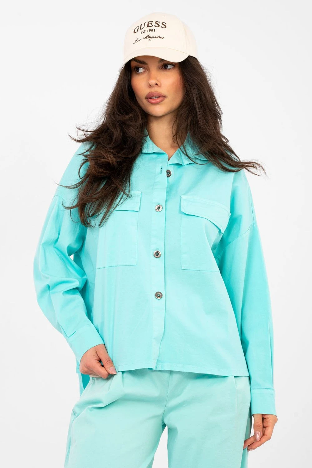 Univerzální dámská košile v casual stylu, ideální pro každodenní outfit. Vyrobená z příjemné bavlny s přídavkem elastanu, poskytuje pohodlí a volnost pohybu po celý den. Model standardní délky s mírně prodlouženým zády, který dodává moderní charakter a skvěle padne na postavě. Hladký vzor činí košili snadno kombinovatelnou jak s kalhotami, tak s legíny. Košile má dlouhý rukáv, klasický límec a knoflíkové zapínání. Na přední straně jsou našité kapsy s patkami, které zdůrazňují casual styl a přidávají praktický prvek. Skvělá volba pro ženy, které ocení pohodlí, funkčnost a nadčasový design.