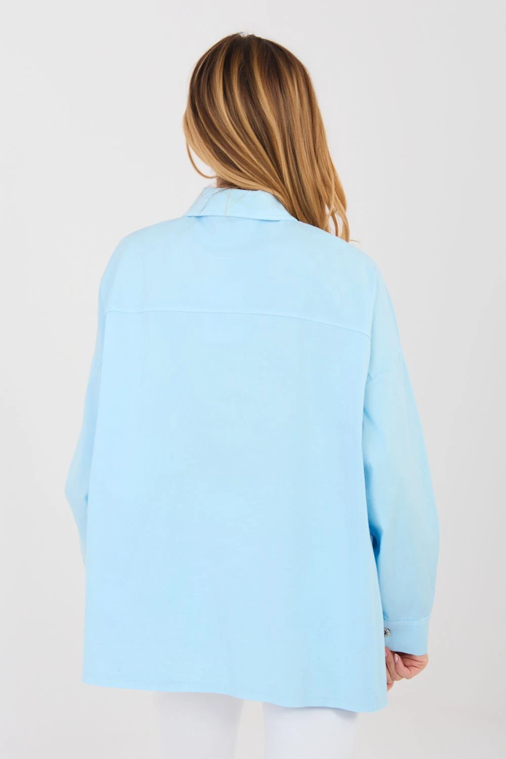 Univerzální dámská košile v casual stylu, ideální pro každodenní outfit. Vyrobena z příjemné bavlny s přídavkem elastanu, poskytuje pohodlí a volnost pohybu po celý den. Model standardní délky s lehce prodlouženým zády, který dodává moderní charakter a skvěle padne na postavě. Hladký vzor umožňuje snadné kombinování s kalhotami i legíny. Košile má dlouhý rukáv, klasický límec a knoflíkové zapínání. Na přední straně jsou přišité kapsy se štítky, které zdůrazňují casual styl a dodávají praktický prvek. Skvělá volba pro ženy, které ocení pohodlí, funkčnost a nadčasový design.