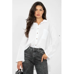 Dámská košile Casual s klasickým, každodenním charakterem, kombinující pohodlí se subtilními detaily. Vyrobená z měkké bavlny, poskytuje pohodlí nošení a volnost pohybů. Model s hladkým vzorem má dlouhý rukáv s možností přichycení, co umožňuje přizpůsobit košili počasí a stylizaci. Elegantní límec a zapínání na knoflíky vpředu dodávají košili nadčasový vzhled, a praktická kapsa na hrudi zdůrazňuje casual styl. Zadní část košile zdobí ozdobný pruh, dodávající celku lehkost a subtilní charakter. Standardní délka z ní dělá skvělý doplněk jak k džínům, tak k sukním, vytvářející univerzální každodenní stylizaci.