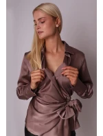 Naše saténová košile s vázáním v pase se skvěle hodí k elegantním džínům a pěknému topu. Má límeček, obálkový výstřih se zavazováním v pase, zapínání na patentky a dlouhé rukávy s manžetami. Doplňte ji svými oblíbenými džínami, černými lodičkami na jehlovém podpatku a vhodnou kabelkou.