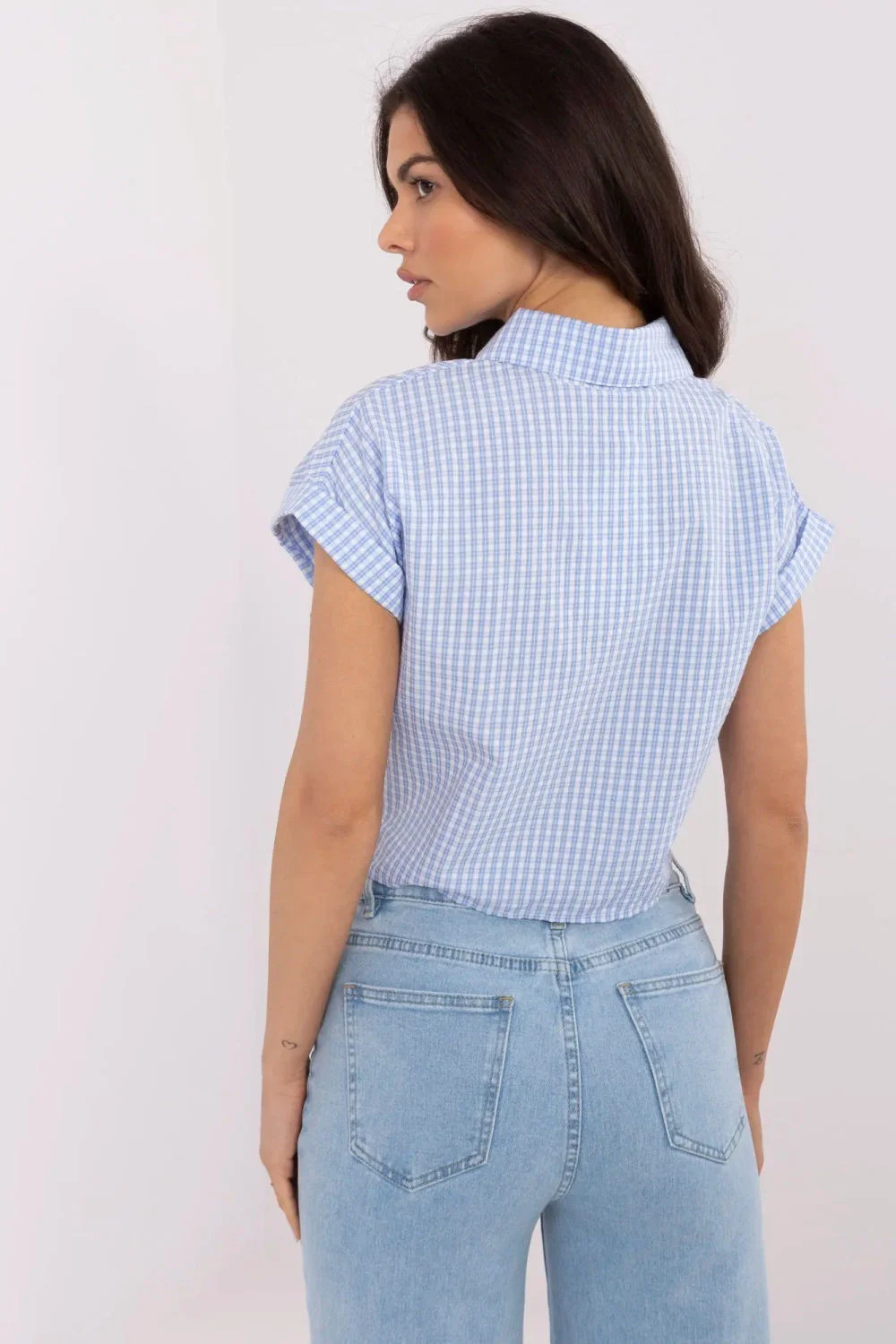Košile dámská v kostkovaném stylu je stylovým a pohodlným návrhem pro každodenní outfity. Vyrobená z směsi bavlny a polyuretanu spojuje přirozenou prodyšnost s jemnou pružností, co zajišťuje pohodlí při nošení. Krátká délka, krátký rukáv a ozdobné vázání dole jí dodávají lehkost a mladistvý charakter. Klasický límeček, zapínání na knoflíky a kapsa na hrudi zdůrazňují její praktický a zároveň módní styl. Kostkovaný vzor z ní dělá skvělou kombinaci jak s džíny, tak s kraťasy.