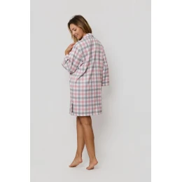 Odkryj wyjątkowy komfort i kobiecy styl dzięki damskiej koszuli nocnej w klasyczną kratkę. Model wykonany z miękkiej, wysokogatunkowej tkaniny z przewagą wiskozy zapewnia idealną cyrkulację powietrza, delikatność dla skóry oraz wygodę przez całą noc. Luźny, lekko oversize’owy krój gwarantuje swobodę ruchów, a subtelne rozcięcia po bokach dodają lekkości i elegancji. Koszula posiada tradycyjny kołnierzyk oraz zapięcie na guziki, dzięki czemu jest nie tylko praktyczna, ale również stylowa. Długi rękaw sprawia, że świetnie sprawdzi się o każdej porze roku — zarówno w chłodniejsze wieczory, jak i letnie poranki. Kratka w odcieniach różu, bieli i szarości dodaje jej uroku i ponadczasowej elegancji. To idealna propozycja dla kobiet ceniących wygodę, jakość i subtelny, domowy glamour.