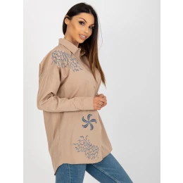 Béžová dámská košile oversize s výšivkou .