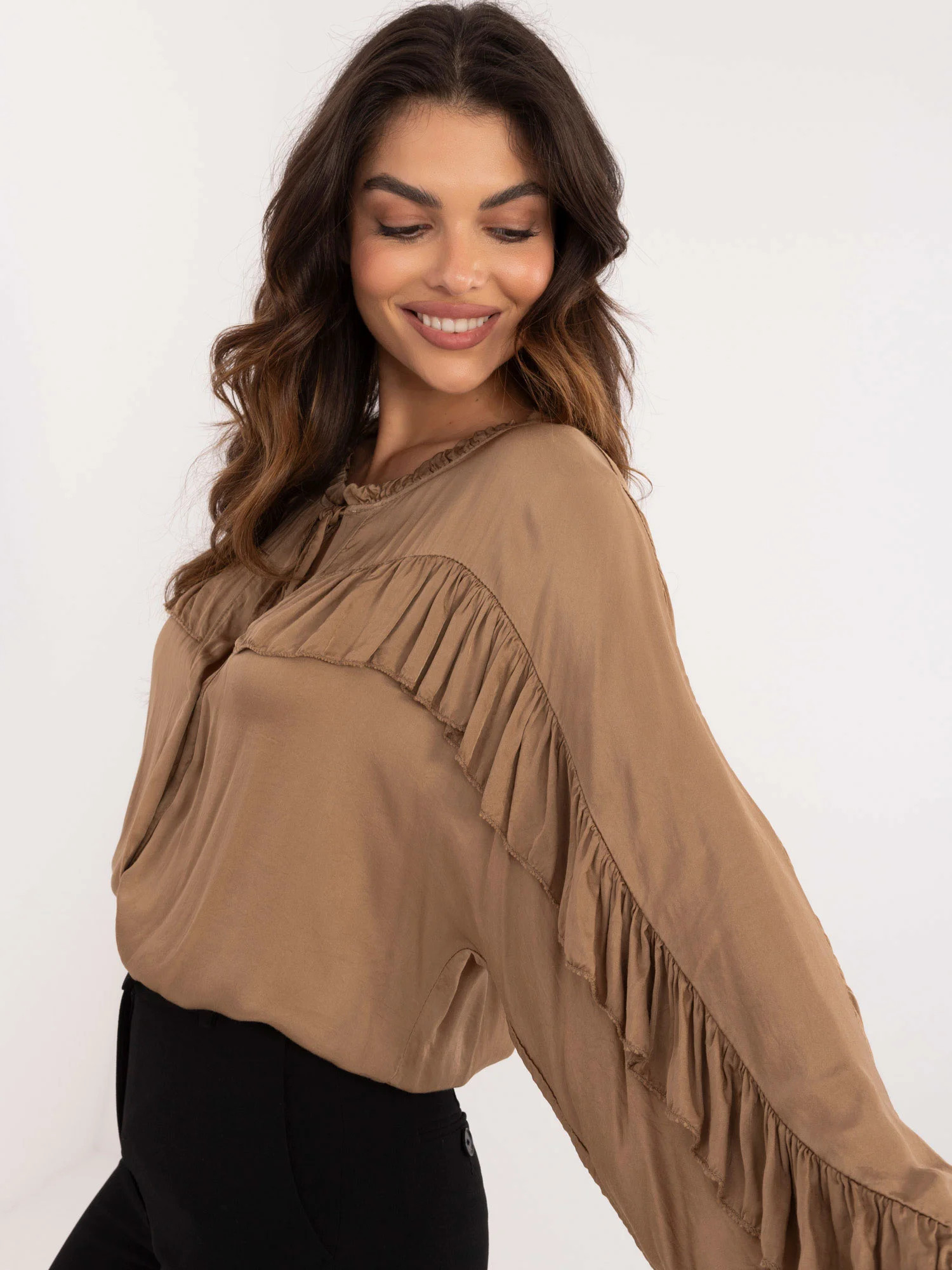 Rozměry halenky v jedné velikosti měřené na plocho: šířka v podpaží - 60 cm, celková délka - 70 cm, délka rukávu - 67 cm.....
