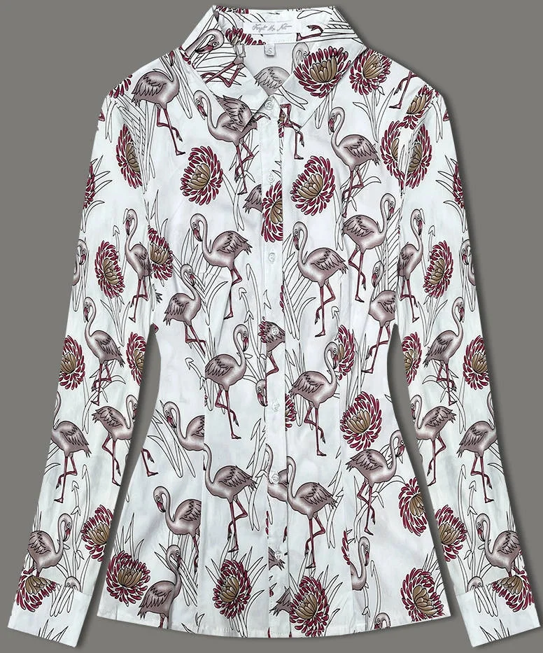 Košile v ecru barvě s dlouhými rukávy a se vzorem plameňáků (AWY0168)