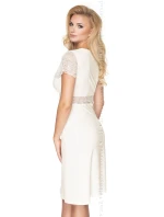 Jemná noční košilka světlé barvy vyrobená z kombinace měkké viskózy a krásné stylové krajky. Velmi ženský střih s bohatým krajkovým vrškem a krátkými krajkovými rukávy upoutá pozornost. Střih je mírně přiléhavý k tělu, dole volnější - určitě se v něm budete cítit krásně a velmi pohodlně. Složení: 80 % viskóza, 11 % polyamid, 9 % elastan.