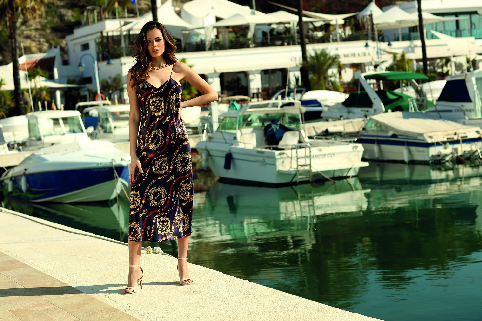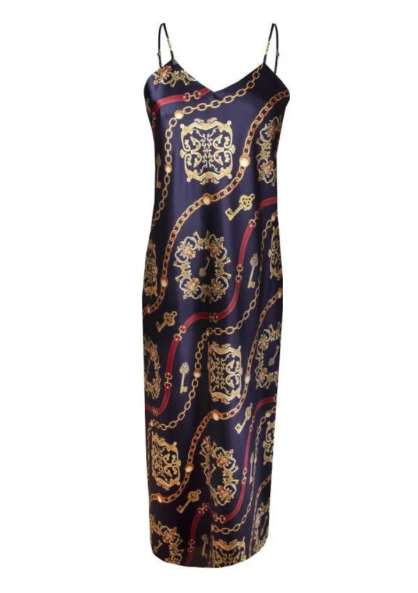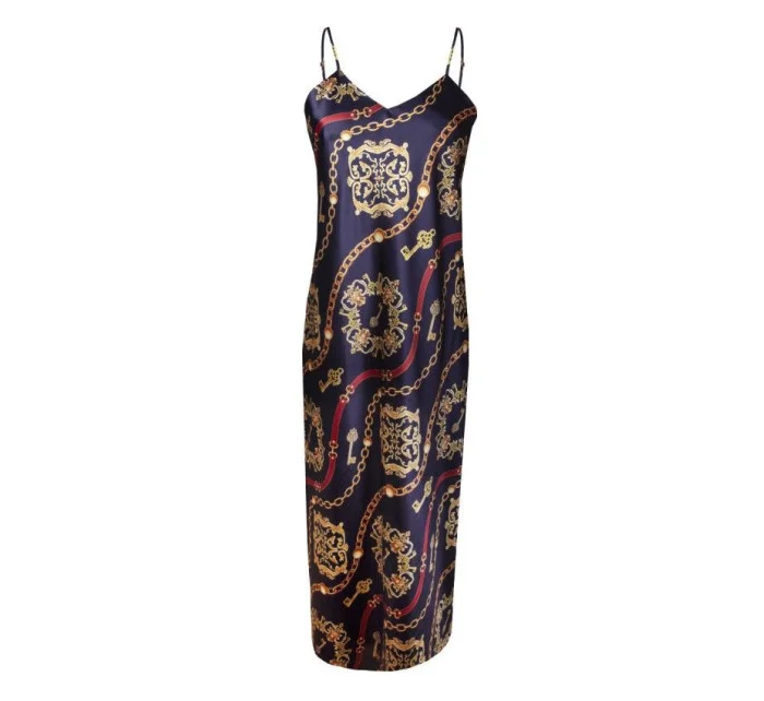 Dlouhá, nepřehlédnutelná noční košile z potištěného saténu. Stvořená pro milovnice klasiky, které si zároveň potrpí na nové trendy a hledají zajímavé kombinace. Tenká, nastavitelná ramínka. Nová kolekce od DKaren. 100% polyester.