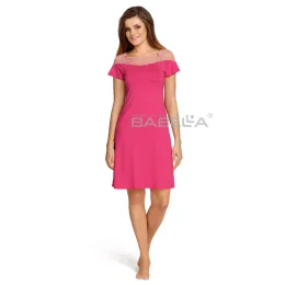Noční košile s krátkými rukávy. Ve výstřihu jsou zdobené krajkou a mají saténové mašle. Lodičkový výstřih. Je vyroben ze splývavé, pružné tkaniny. Poskytuje pocit svobody a pohodlí. Produkt je k dispozici ve dvou barvách. Složení: 94 % viskóza, 6 % elastan.