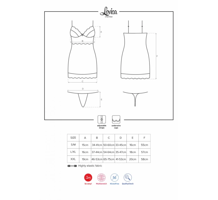 Produkt Košilka Lovica chemise - Obsessive prodáváme v těchto velikostech: L/XL, S/M, XXLa barvách červená5901688213292, 5901688213285, 5901688213308