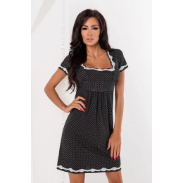 Černá noční košilka s drobnými bílými puntíky je jemným odkazem na velmi ženský retro styl. Košilka vypadá na siluetě elegantně a poskytuje plné pohodlí. Je vyrobena z viskózy, je elastická a měkká. Věnujte pozornost krásnému střihu, inspirovanému klasickými letními šaty - vypasovaný horní díl, obdélníkový výstřih, řasení pod poprsím - celek působí elegantně a žensky. Bílé krajkové lemování je závěrečnou tečkou v tom nejlepším stylu. Složení: 95 % viskóza, 4 % elastan, 1 % polyamid.