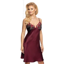 Elegantní noční košile pro milovnice v současnosti velmi módního saténu. V tmavší švestkové barvě. Neuvěřitelně smyslná a velmi ženská. Košíčky zvýrazněné ozdobnou květinovou výšivkou. Velmi atraktivní střih, dole jemně rozšířený. Nastavitelné popruhy. Složení: 97% polyester, 3% polyamid.