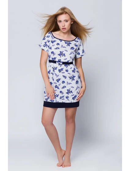 Velmi pohodlná noční košile ušitá z bavlny, v modré a tmavě modré barvě růží. Střih je mírně volnější v horní části i v oblasti boků a je zvýrazněn mírným žebrováním uprostřed a ve spodní části košile. Složení: 100% bavlna.