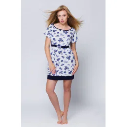 Velmi pohodlná noční košile z bavlny, v modré a tmavě růžové barvě. Mírně volnější v horní části i v oblasti boků, zvýrazněná jemným žebrováním uprostřed a ve spodní části košile. Složení: 100% bavlna.