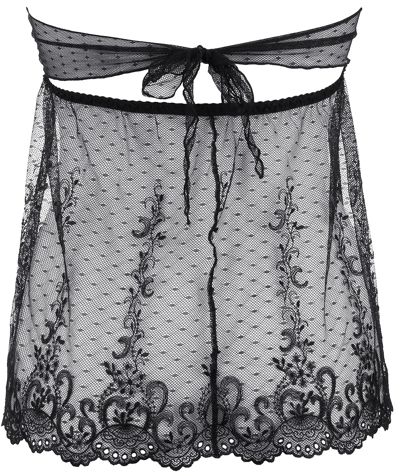 Vzdušná a exotická košilka v kompletu s tangy, vyrobená ze stejné krajky, podtrhne vaši energii a upoutá i ty nejnáročnější pohledy. Pohodlně a stabilně se nosí, díky elastickému pásku pod linií prsou se přizpůsobí každé postavě. Nastavitelný motýlek na prsou poskytuje další výhodu v podobě možnosti nosit volnější nebo přiléhavější verzi, jak si přejete. Materiálové složení: Polyamid 97 %, bavlna 2 %, elastan 1 %
