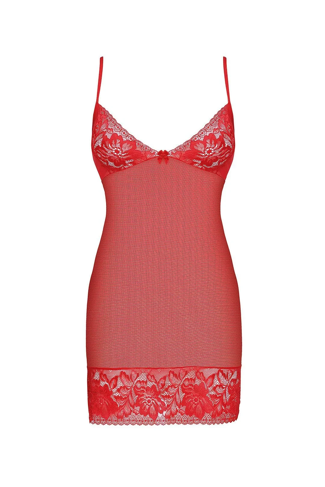 Krásná červená noční košilka bez ramínek se smyslným, mírně vypasovaným střihem. Zdobí je jemná krajka, které si všimnete na košíčcích i v oblasti stehen. Hluboký, neuvěřitelně ženský výstřih umožňuje pohledu klouzat po těle. Uprostřed s malou mašlí. Elastická tkanina, síťovina (tyl), velmi pohodlná. Složení: 80 % polyamid, 20 % elastan.EAN čárové kódy zboží jsou: