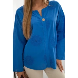 Košilová halenka model 21251224 s vyšívaným vzorem - chrpově modrá