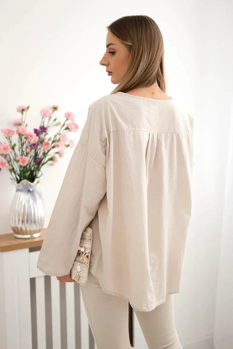 Košilová halenka s vyšívaným vzorem béžový