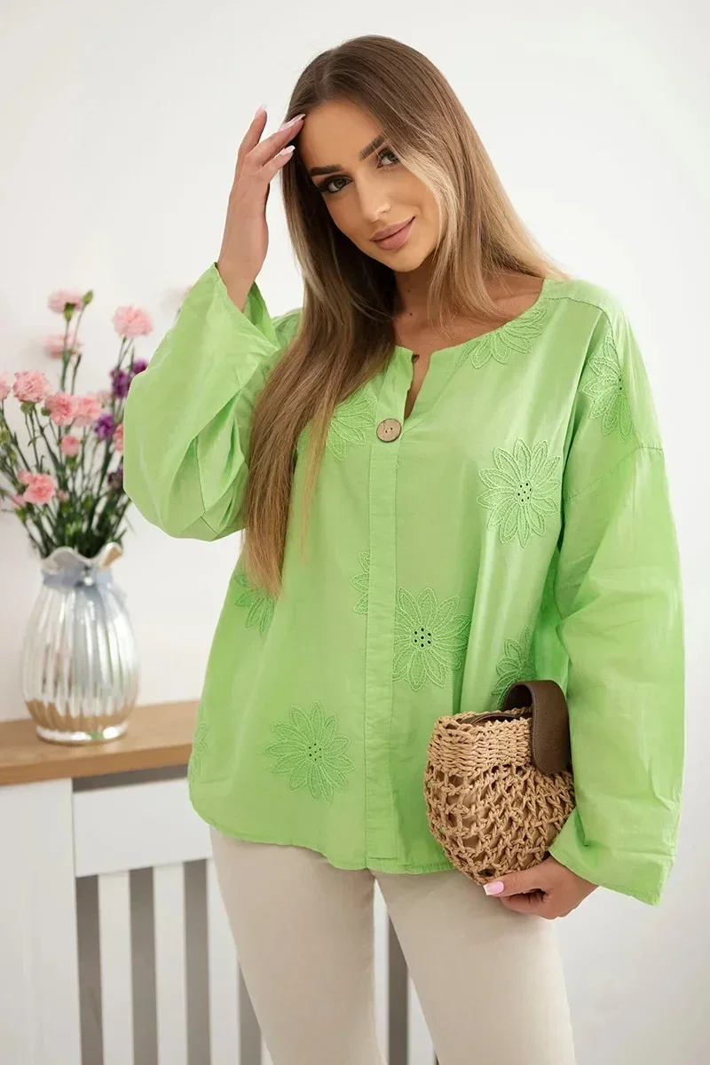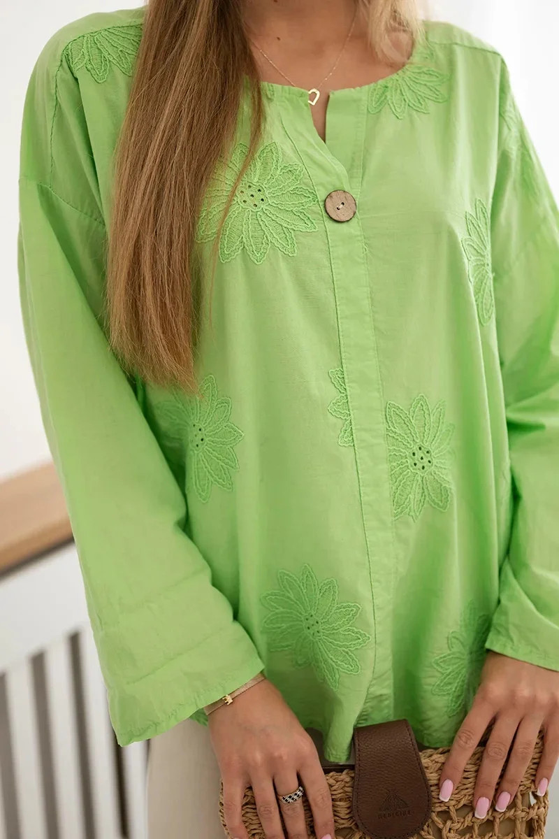 Košilová halenka s vyšívaným vzorem jasně zelená