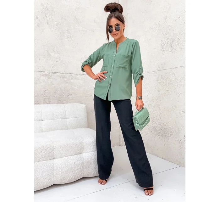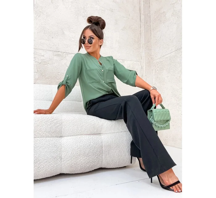 Košilová halenka v khaki barvě se stojáčkem model 19764080 - Moon