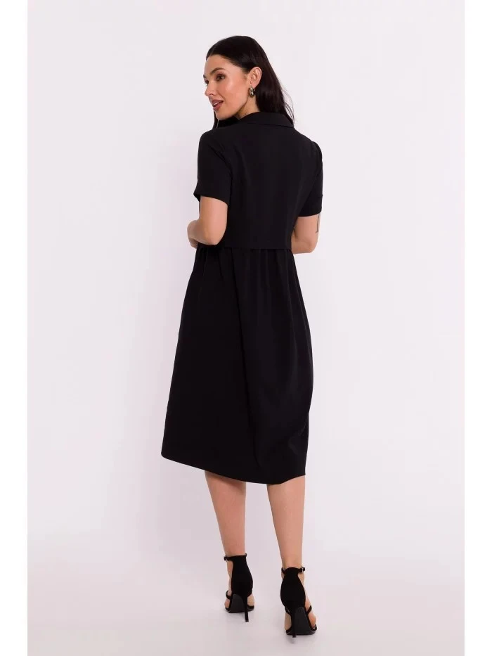 100% polyester PODROBNOSTI O PRODUKTU: tkaná látka košilové šaty šaty zapínání vpředu na knoflíky a límeček krátký rukáv přední kapsy ve švu bez podšívky délka pod kolena naše modelka je 164 cm vysoká a nosí velikost S navrženo a vyrobeno v Polsku