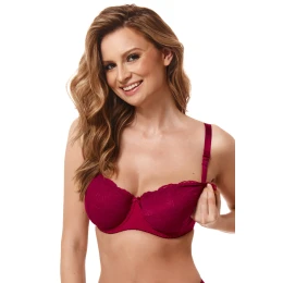 Podprsenka Kostar, model MM21, má drátky, které podporují a tvarují prsa, svislé velrybí kostice na bocích, nastavitelná ramínka, která nelze odepnout, kovové háčky na ramínkách a zapínání na zádech. 60 % bavlna, 30 % polyamid, 10 % elastan, dámské spodní prádlo s odepínacími košíčky.