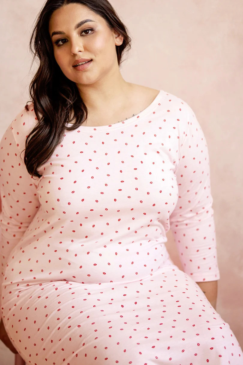 Dámská košile se 7/8 dlouhými rukávy, ušitá ze vzorované bavlny, s lodičkovým výstřihem. Délka ke kolenům.