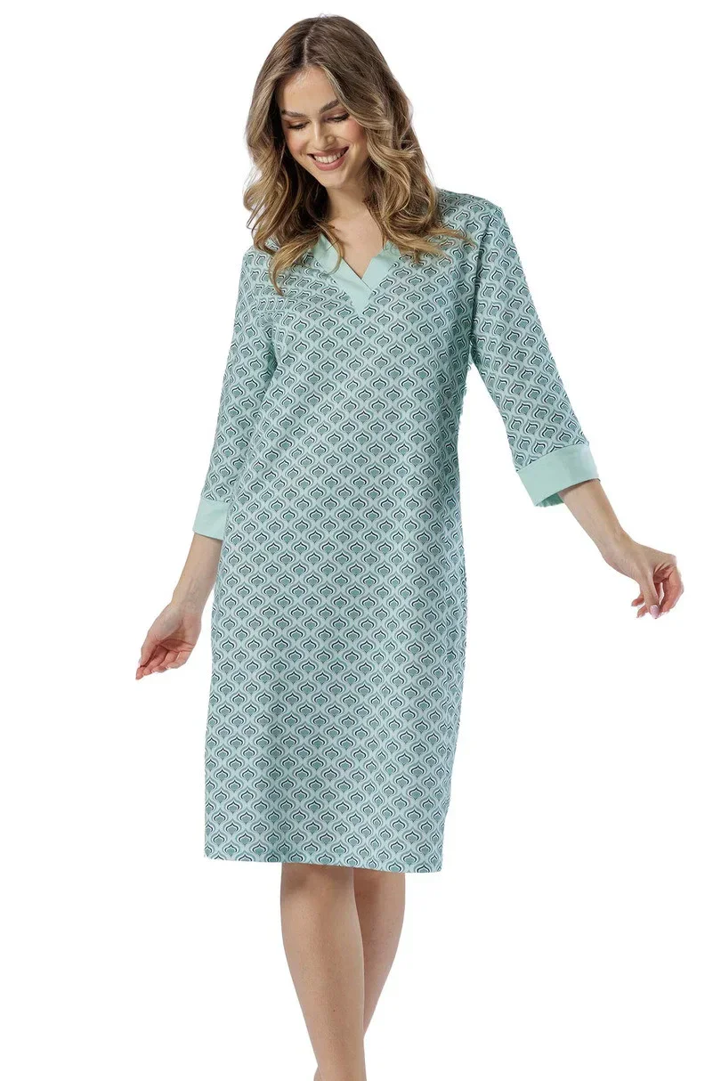 Dámská košile s 3/4 rukávy, vyrobená ze vzorované bavlny.