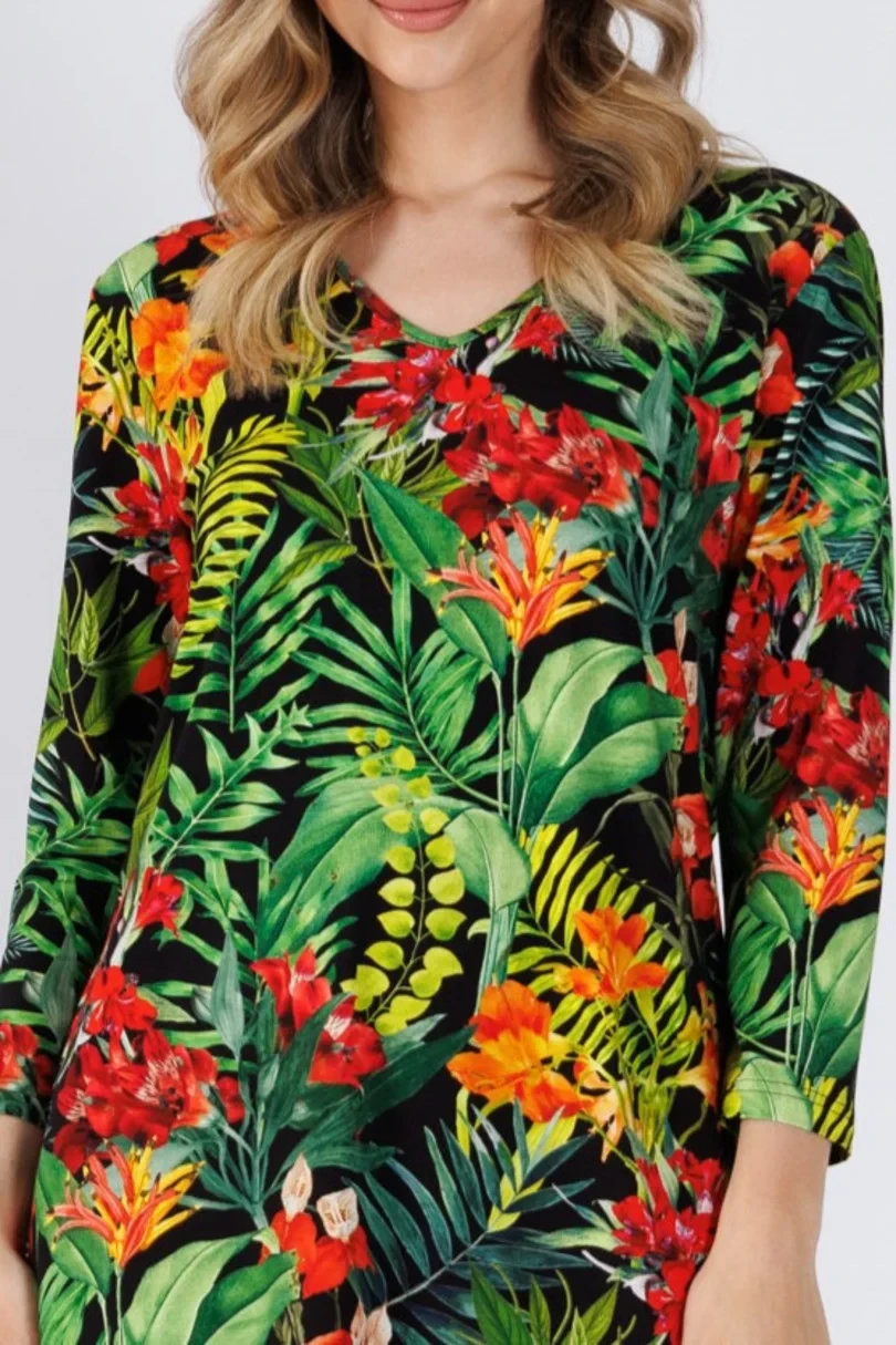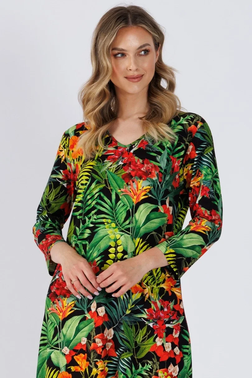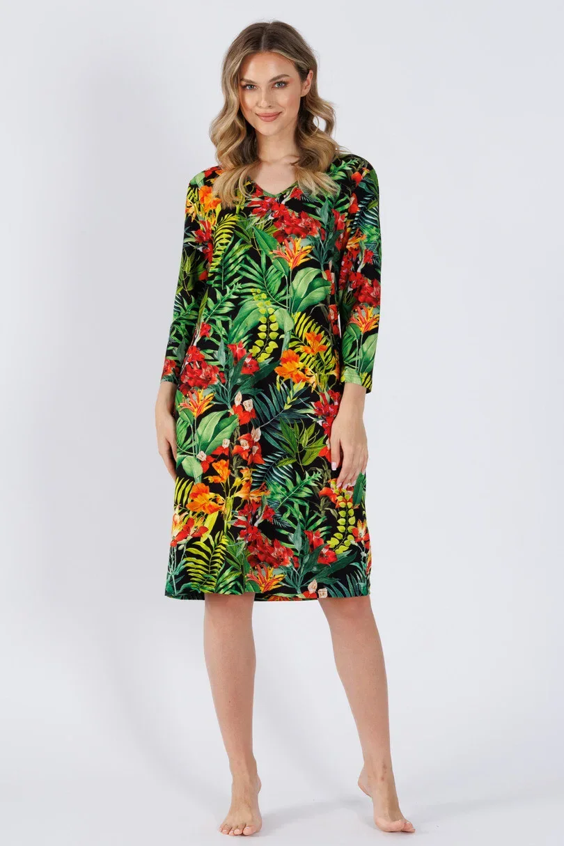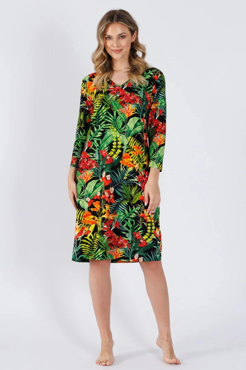 Dámská košile s rukávy 3/4. Výstřih. délka ke kolenům.