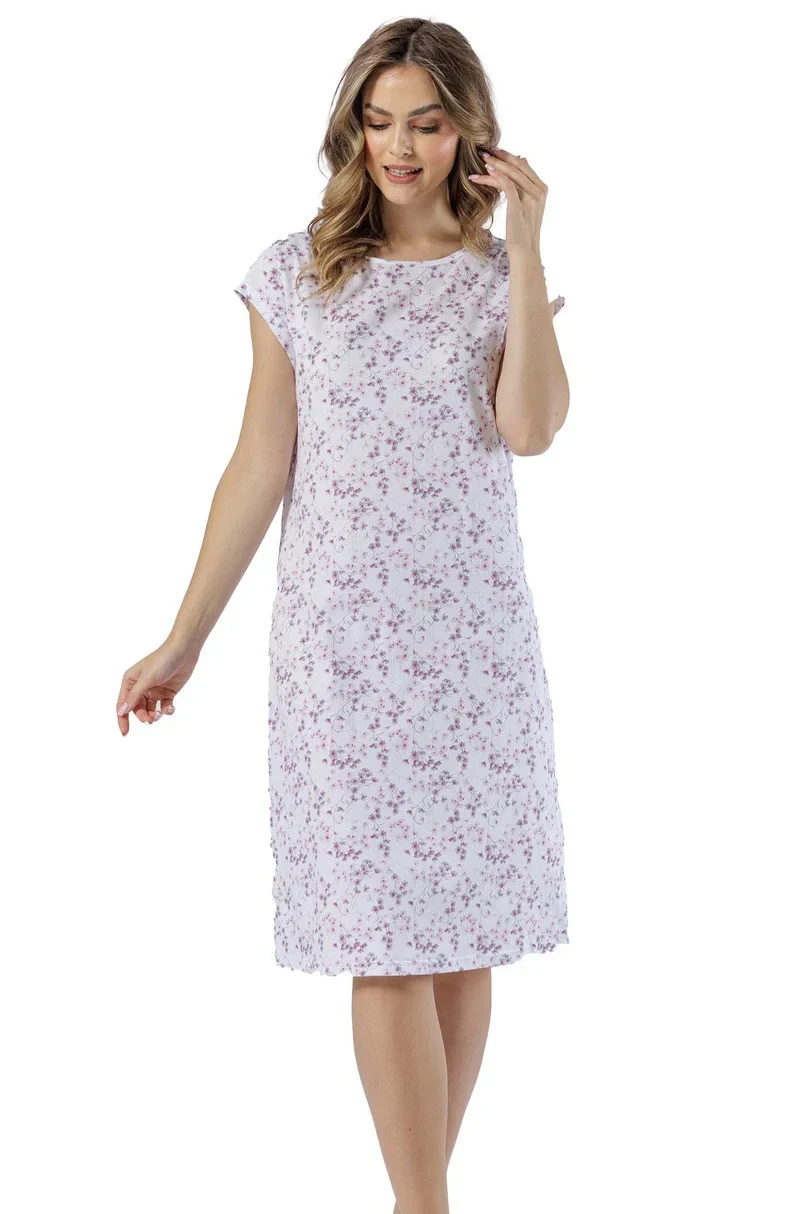 Dámské tričko s krátkým rukávem, vyrobené z měkké bavlny, kulatý výstřih, délka ke kolenům.