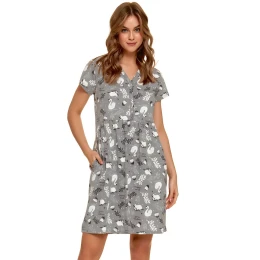 Koszula damska z krótkim rękawem, uszyta z wyjątkowo miękkiej bawełny. Koszula zapinana na napy, pod biustem lekkie marszczenie dzięki czemu fason idealnie układa sie do ciała. Długość przed kolano.
